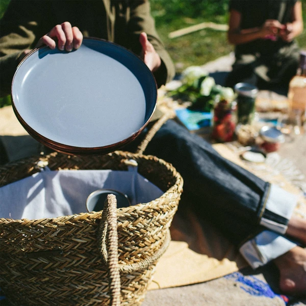 The curved edges of the Enamel Deep Plates are both design-forward and useful, keeping rich sauces and sweet compotes in the dish and off your table. Each item features a hand-finished baked stainless steel trim creating a copper-like patina finish, resulting in unique pieces that form a cohesive set.