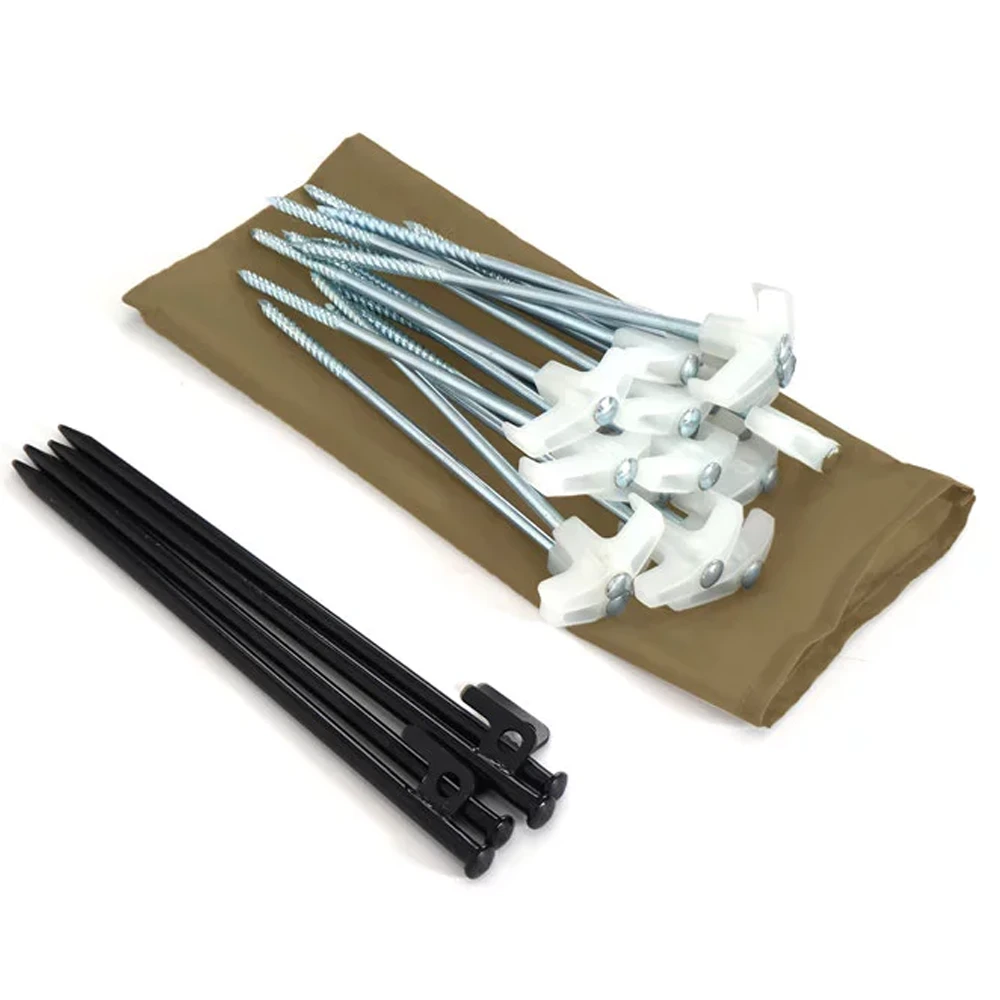Accessories: 8 forged pegs, 16 steel pegs, rope 5m x 4 (attached to the tent body), rope 4m x 4 (attached to the tent body), rope 3m x 10 (attached to the tent body), carry bag