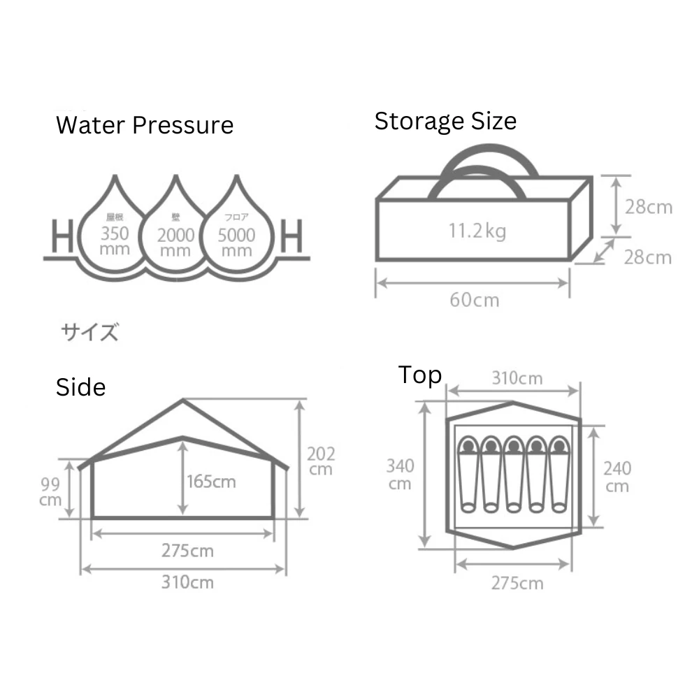 - Inner size: (Approx.) W275 x D240cm *Floor size