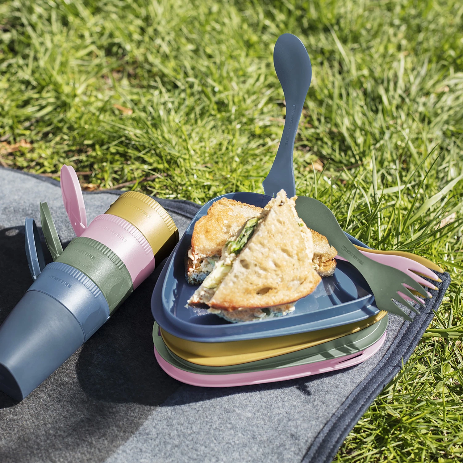 Eating is more fun when done outside in nature and with friends. With the Light My Fire Eat’n DrinkKit BIO, that is easy to do. Each piece stacks and packs up neatly and securely. This mess kit includes four high-edged plates, one of which functions as the lid, along with a harness that ensures everything inside the container stays where it should. This kit also includes four Pack-Up-Cup that can be used for both hot and cold drinks. To round out the kit, we include 4 Spork Originals that is our iconic spoon-fork-knife combo. Forget about disposable kitchenware, use the reusable Eat’n DrinkKit. Not only is it more sustainable to do so but they are also made from Biobased plastics that are 100% BPA-free that are dishwasher and microwave safe