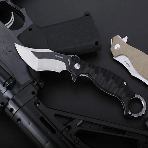Developed from common Karambit knives, P881 is designed for tactical uses, outdoor uses and rescue uses where strong tip and sturdy edge point matter. As well as most of Karambit knives, there is also a rear safety ring on P881, along with ergonomically shaped and textured G10 handle, offering quite firm grip and comfortable reverse-grip hit. Small and compact, P881 is easy to carry and conceal.