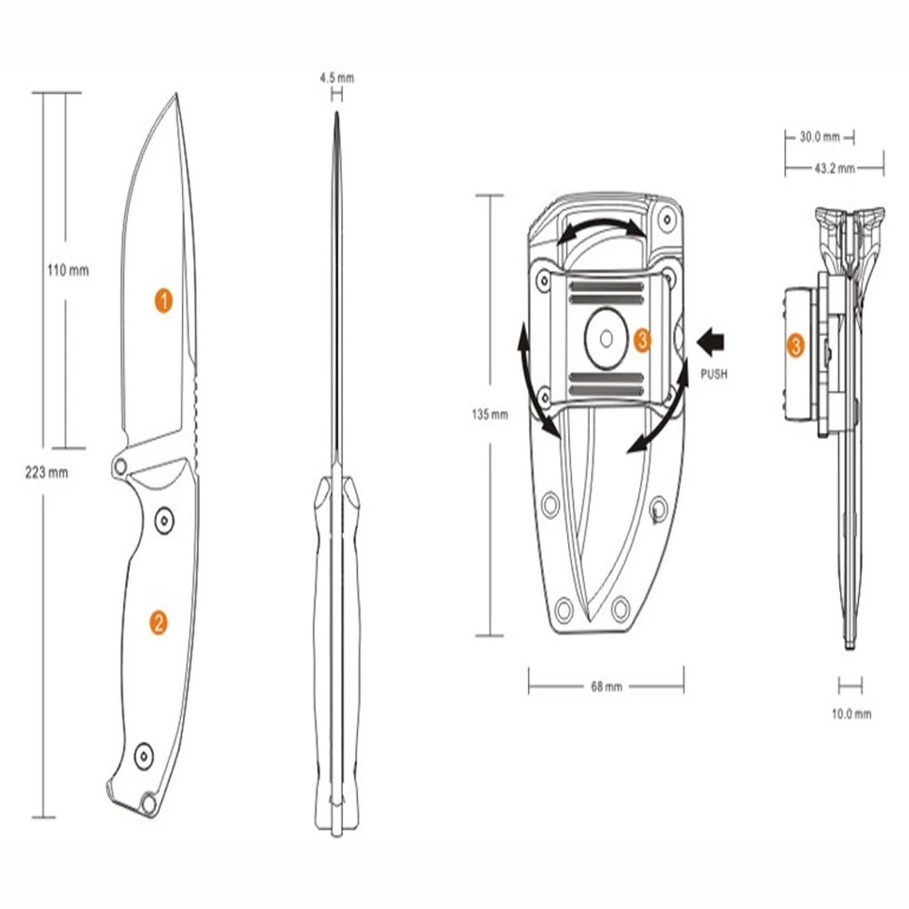 - Blade Material: 14C28N stainless steel (58~60 HRC)